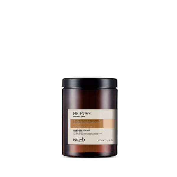 NIAMH BE PURE Organic Hair Restore Atjaunojošā matu maska ar organisko olīveļļu un banāna ekstraktu.