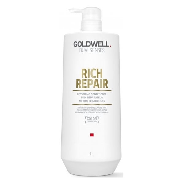 To repair damaged hair, a single shampoo just isn’t enough. I think we all know for the perfect hair you need the perfect combo of shampoo and conditioner. So here we are, at the conditioner aisle for damaged hair with Goldwell Rich Repair conditioner in full view. Just as the shampoo, the conditioner contains microPROtec and IntraLipid technologies, that helps for a fast hair restoration and restores its natural hair elasticity. Brittle hair? No problem. The conditioner strengthens the hair, making it stronger.
