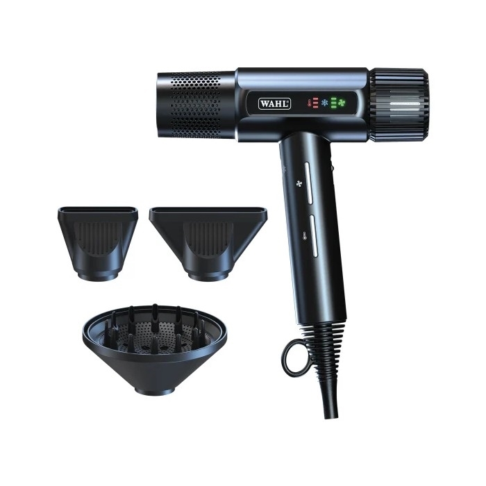 The WAHL Vanquish Compact is a professional hair dryer from a renowned brand. Incredibly compact and lightweight, it guarantees maximum comfort, precise airflow, and high efficiency for perfect results. It's a simple yet functional hair care assistant, making drying quick and styling effortless.