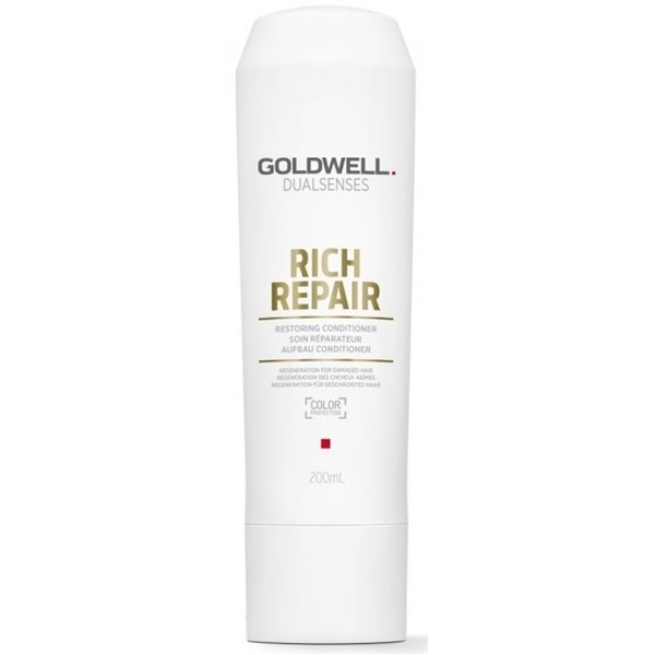Goldwell Dualsenses Rich Repair reģenerējošs kondicionieris bojātiem, sausiem matiem. Bagātināts ar keramīdiem, kas atjauno matu struktūru. Goldwell Dualsenses Rich Repair kondicionieris intensīvi mitrina, mīkstina un atjauno matus līdz pašiem galiņiem, pasargā no kaitīgās vides ietekmes un lūšanas, piešķir spīdumu un dzīvīgumu.