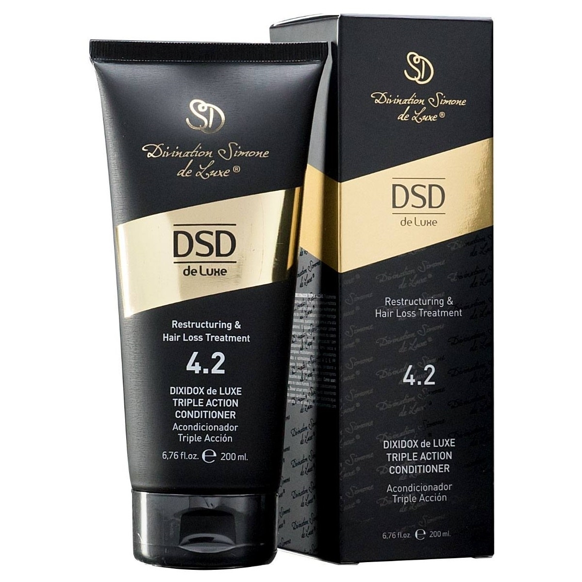 Кондиционер тройного действия DIXIDOX DE LUXE. Кондиционирующее средство помогает восстановить, питать и защищать волосы, одновременно стимулируя их рост. Его формула основана на масле ши, гидролизованном коллагене, кератине, алоэ вера, а высокая концентрация пантенола помогает укрепить и реструктурировать волосяное волокно. В качестве стимулирующих рост волос ингредиентов он содержит уникальный белково-минеральный комплекс, микроэлементы, такие как цинк, железо, кремний и магний, а также поливитаминный комплекс, включающий антиоксиданты и стимуляторы, такие как витамины A, C, E, PP, рибофлавин, биотин, инозитол, тиамин, пиридоксин и никотинамид. Он также содержит экстракт сабаля. Показан для ломких и поврежденных волос. Результат — блестящие, мягкие и более послушные волосы, облегчающие укладку.