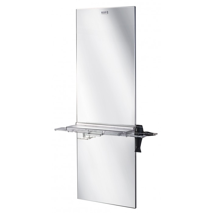 Chromed ABS frame.Glued mirror.Worktop in SAN with aluminium support and multifunctional accessories.Available also with LED lighting.