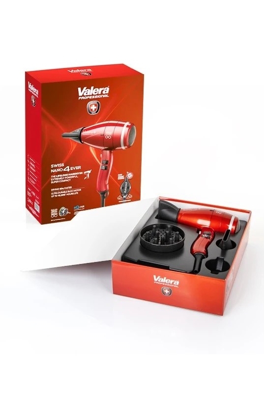 Extremely durable, very powerful professional hairdryer, very compact. Features: 2200 W; Brushless digital BLDC-ENDURO-X motor; eQ-AIR controller; SANIFY system; Ion generator; Smart airflow technology; SuperFlex cable 3 m with ROTOCORD; Twisted wire SECURITY heating element; 6 airflow/temperature settings; COLD air button; Removable metal filter; 2 professional ultra-thin concentrator nozzles: TOUCH ME cool nozzle (7.5 cm), standard nozzle (6 cm); diffuser and bag included; Weight without cable 445 g.