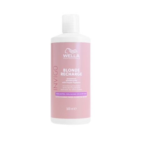 Wella Professionals Invigo Blonde Recharge šampūns atsvaidzina matu krāsu un palīdz saglabāt tās spožumu un spīdumu vēl ilgu laiku. Neatkarīgi vai Jums ir dabīgi, krāsoti vai arī šķipsnās balināti mati. Šis violetais šampūns palīdz dabīgi blondiem vai krāsotiem blondiem matiem atbrīvoties no nevēlamajiem dzeltenajiem un siltajiem toņiem. Atstāj matus īpaši maigus pieskārienam.
