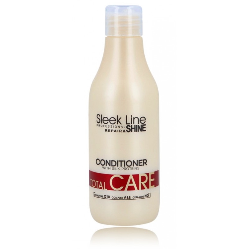 Кондиционер Total Care с протеинами шелка, витаминами A+E, керамидами и коэнзимом Q10. Кондиционер предназначен для ежедневного ухода за сухими, тусклыми и чувствительными волосами. Прекрасно очищает кожу головы, увлажняет и разглаживает волосы, делает их эластичными и мягкими. Придает блеск, облегчает расчесывание и укладку. Способ применения: нанесите небольшое количество средства на влажные волосы. Оставьте на 3-5 минут, затем тщательно смойте теплой водой.